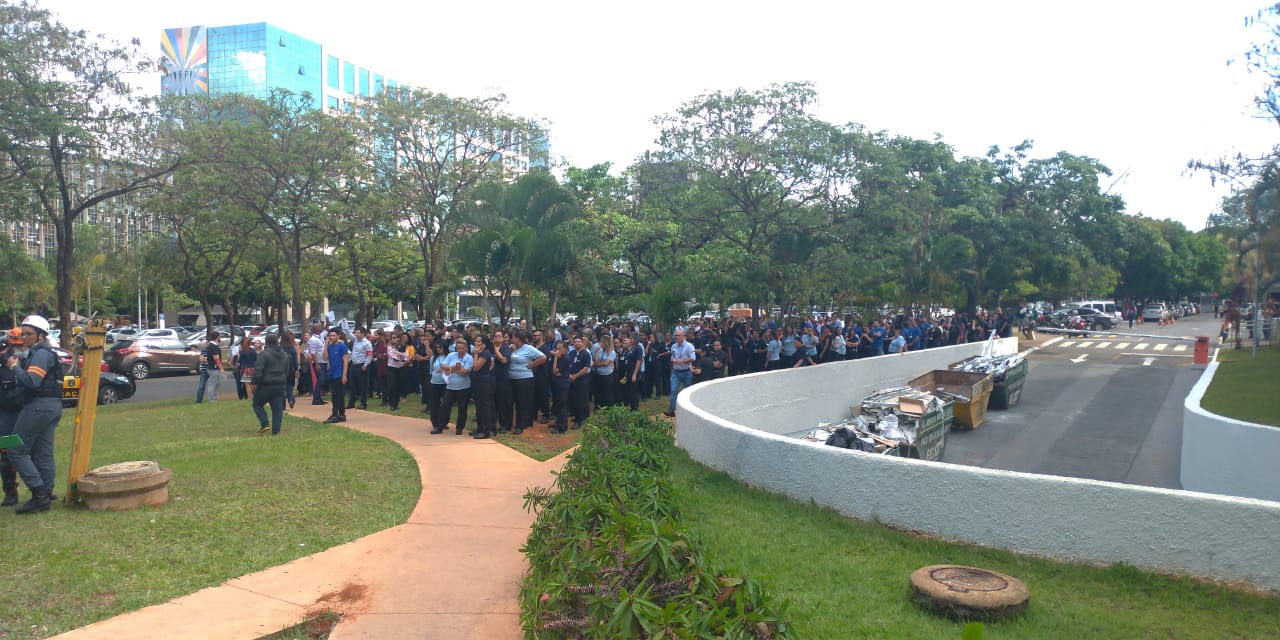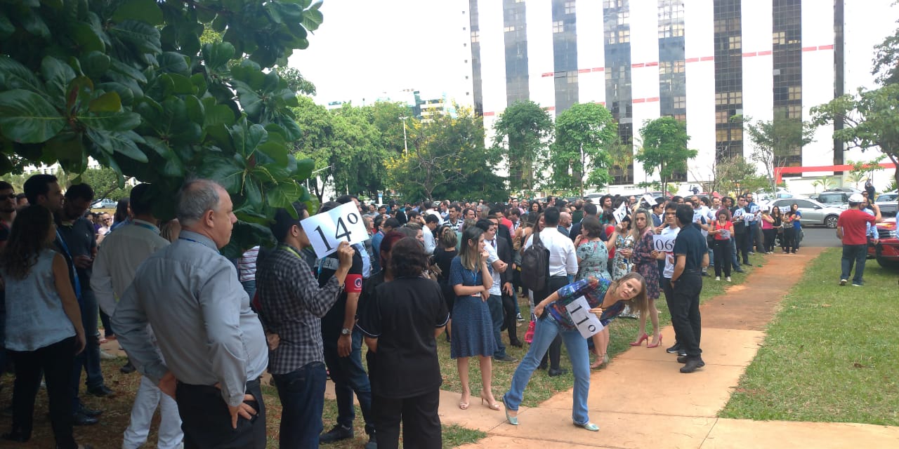 Os empregados do Edifício Matriz I da Caixa participaram na tarde desta sexta-feira (25) de exercício de desocupação do prédio, em simulação de situação de risco à segurança por comprometimento da edificação, incêndio ou outras ocorrências.