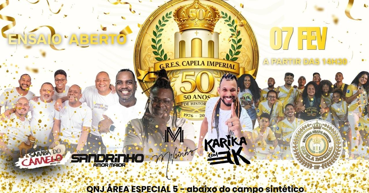 O Sindicato dos Bancários de Brasília apoia a celebração dos 50 anos da escola de samba Capela Imperial, de Taguatinga, que realiza no próximo dia 7 de fevereiro, a partir das 14h, um ensaio aberto especial em comemoração ao seu cinquentenário. O evento acontece na sede da escola, localizada no Setor QNJ, Área Especial 05, próximo ao campo sintético.