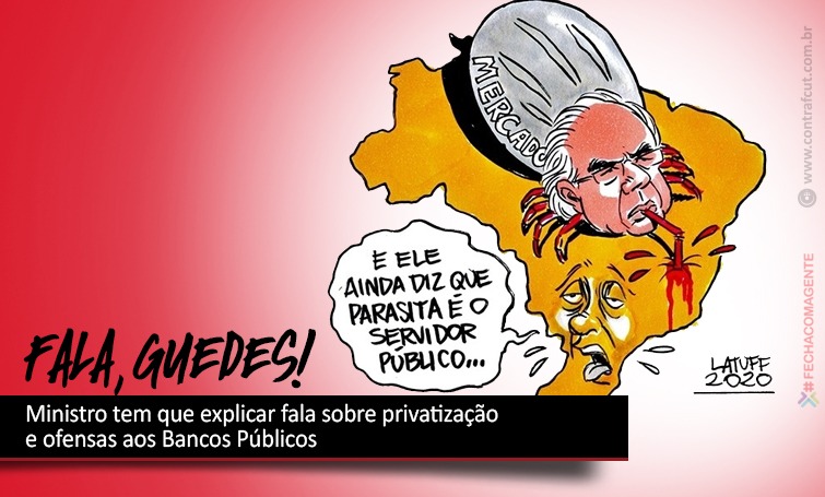 Para o secretário de Relações do Trabalho da Contraf-CUT, Jeferson Meira, a declaração deixa claro o desprezo do governo pelo patrimônio público. “Diante do esforço e do profissionalismo dos colegas bancários, que estão na frente da batalha contra o coronavírus, servindo a população e, além disso, diante dos fatos em que instituições públicas se tornam o centro do debate na luta contra os efeitos da pandemia na saúde e economia, vêm à tona as intenções nefastas do principal ministro do governo Bolsonaro, que quer privatizar os bancos públicos e ataca de forma irresponsável e desrespeitosa seus funcionários e funcionárias, que já se encontram aflitos neste momento delicado que passamos”, afirma Jeferson.