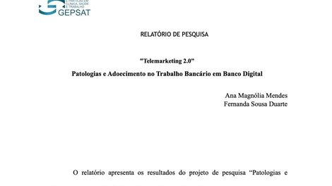 O Sindicato vai apresentar no dia 15 deste mês, às 19h, na sede da entidade, os resultados da pesquisa Patologias e Adoecimento no Trabalho Bancário em Banco Digital. Realizado em parceria com o Gepsat (Grupo de Estudos em Práticas Clínicas, Trabalho e Saúde), o Laboratório de Psicodinâmica e a Clínica do Trabalho da UnB, o trabalho recebeu o nome de Telemarketing 2.0, e contou com a participação de 36 bancários.