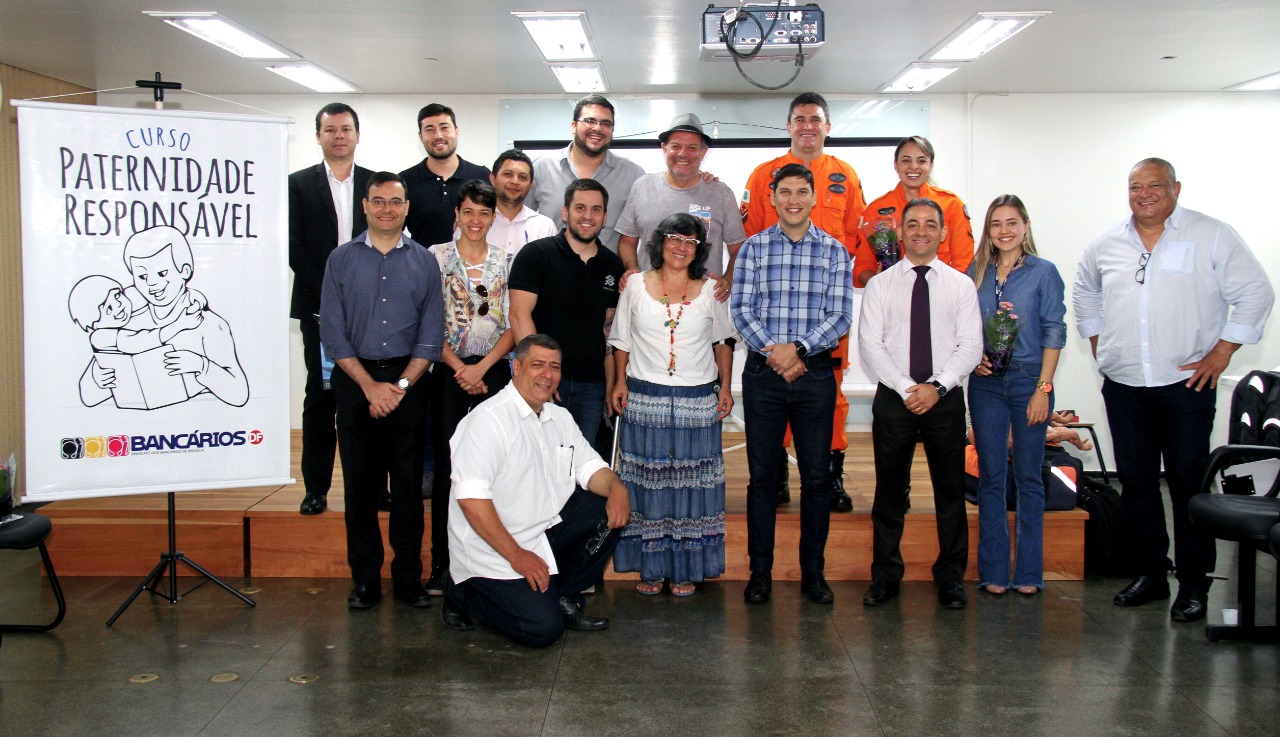A 19ª turma do curso de Paternidade Responsável, promovida pelo Sindicato, certificou mais 10 pais bancários e, pela primeira vez, uma mamãe bancária em relacionamento homoafetivo. O encontro presencial, realizado na última quarta-feira (20), faz parte da reta final do curso e, nesta edição, contou com aula prática de equipe do Corpo de Bombeiros Militar do DF.