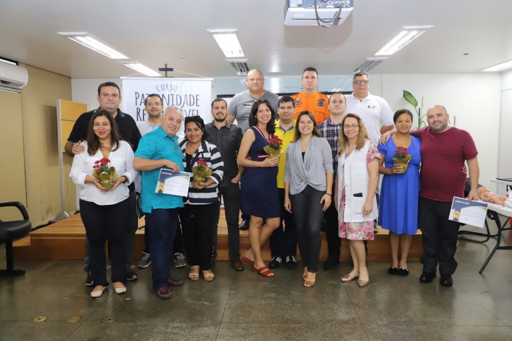 Durante o encontro presencial, última fase do curso, os futuros pais receberam orientações valiosas sobre o trato que os pais devem ter com as gestantes e com os bebês, desde a fase neonatal até a primeira infância. Quatro mães também participaram da aula presencial, realizada na sede do Sindicato.