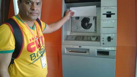 Enquanto as novas portas de vidro estão sendo instaladas, o banco colocou um tapume provisório na entrada do local.