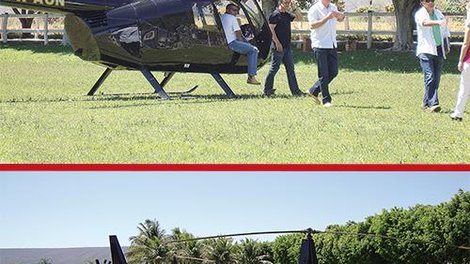 Na foto acima, o prersidente do BRB, Paulo Evangelista (de branco e verde), desembarca no município de Buritis (MG) para participar de evento em propriedade particular