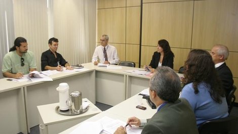 À esquerda, os diretores do Sindicato Kleytton Morais (de camisa verde) e Antonio Eustáquio (de camisa preta) negociam com os integrantes do Comitê de Administração e Custos, gestor do PPR