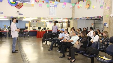 O Sindicato se reuniu nesta segunda-feira (4) com gerentes de expediente de diversas unidades do banco para discutir sobre as regras do processo seletivo interno para gerente de negócios. O encontro aconteceu na agência Taguatinga Centro e reuniu representantes das unidades de Taguatinga Sul, Taguatinga Shopping, Shopping Popular, SIA e TJ Taguatinga, entre outros.
