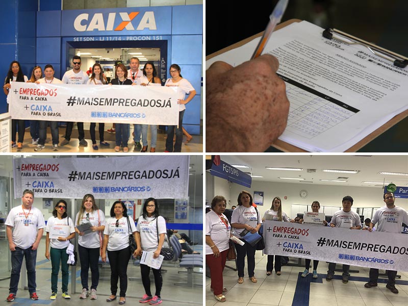 Além de chamar a atenção da sociedade para o problema, os manifestantes também recolheram assinaturas para um abaixo-assinado a ser entregue à direção da Caixa.