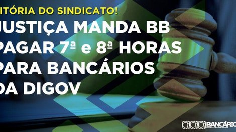 O Sindicato conquistou mais uma importante vitória, desta vez em favor dos bancários do Banco do Brasil lotados na Digov. Ao julgar ação coletiva movida pelo Sindicato, a Justiça reconheceu o direito dos assessores/analistas pleno e sênior lotados na diretoria ao recebimento das 7ª e 8ª horas extras, bem como seus reflexos.