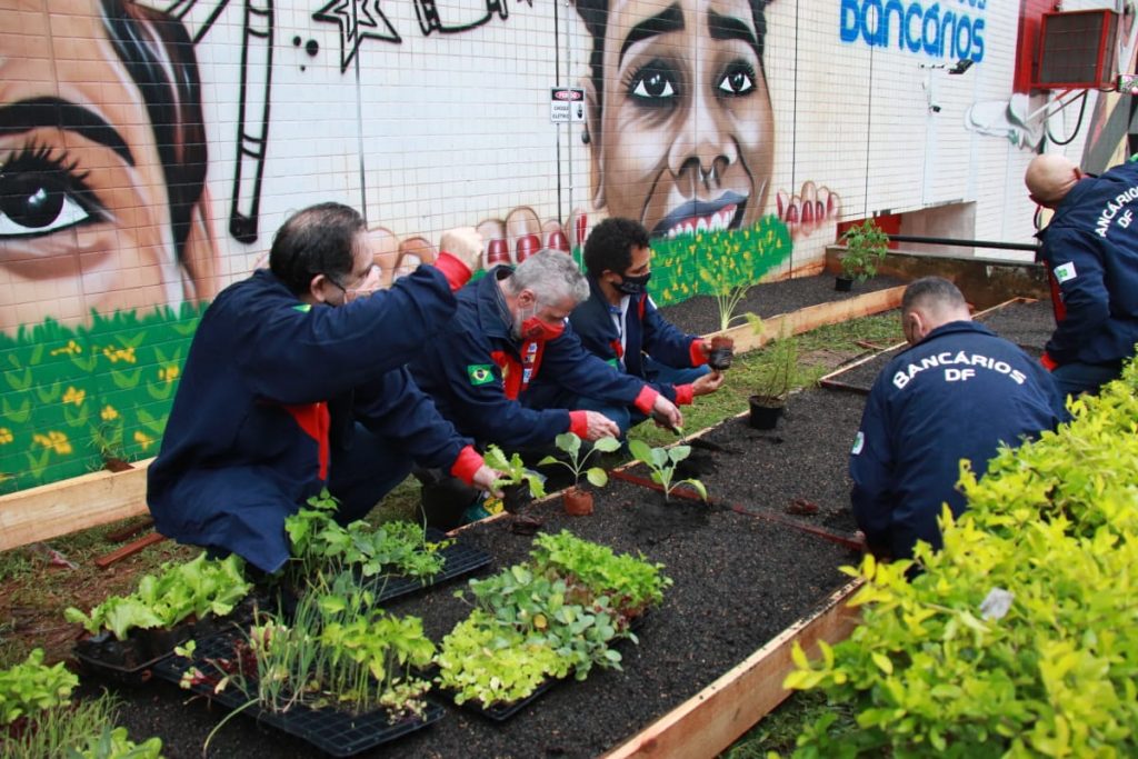Nesta sexta-feira (12), o Sindicato dos Bancários de Brasília inaugurou uma horta comunitária ao lado do Teatro dos Bancários, localizado em sua sede, na EQS 314/315 Sul. A horta recebeu o nome de Canteiro da Resistência Toninho Maya, em homenagem ao bancário do Banco do Brasil e talentosíssimo músico que nos deixou recentemente em decorrência da Covid.
