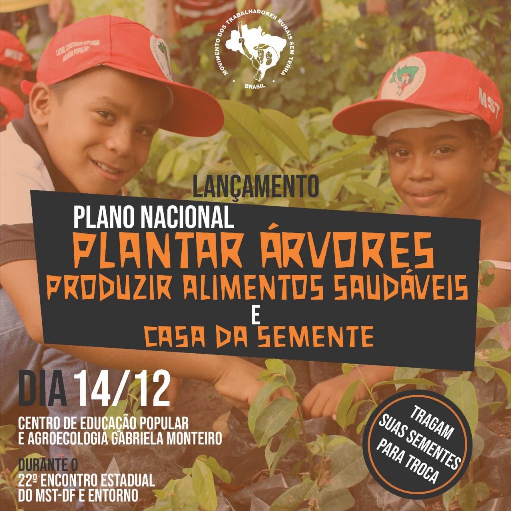 O Sindicato convida as bancárias e os bancários a participarem do lançamento do Plano Nacional do MST de plantio de árvores, produção de alimentos saudáveis e da Casa da Semente, que ocorre neste sábado (14), durante o 22º Encontro Estadual do MST do DF e Entorno, no Centro de Educação Popular e Agroecologia Gabriela Monteiro, em Brazlândia.