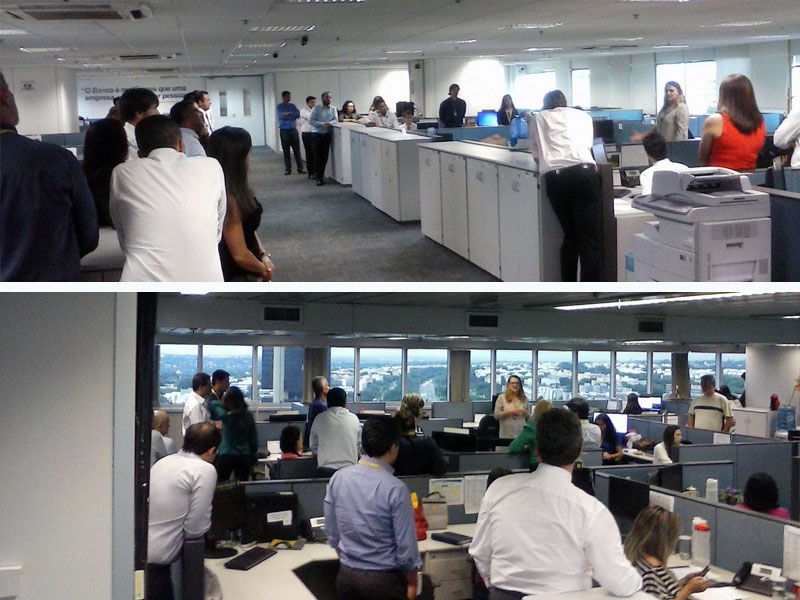 Em reuniões realizadas nesta quarta-feira (8) nas diretorias de Finanças e de Segurança Institucional do Banco do Brasil, diretores do Sindicato chamaram os bancários para a luta contra o Projeto de Lei nº 4330/2004, que ataca direitos trabalhistas e visa liberar a terceirização das atividades-fim das empresas.