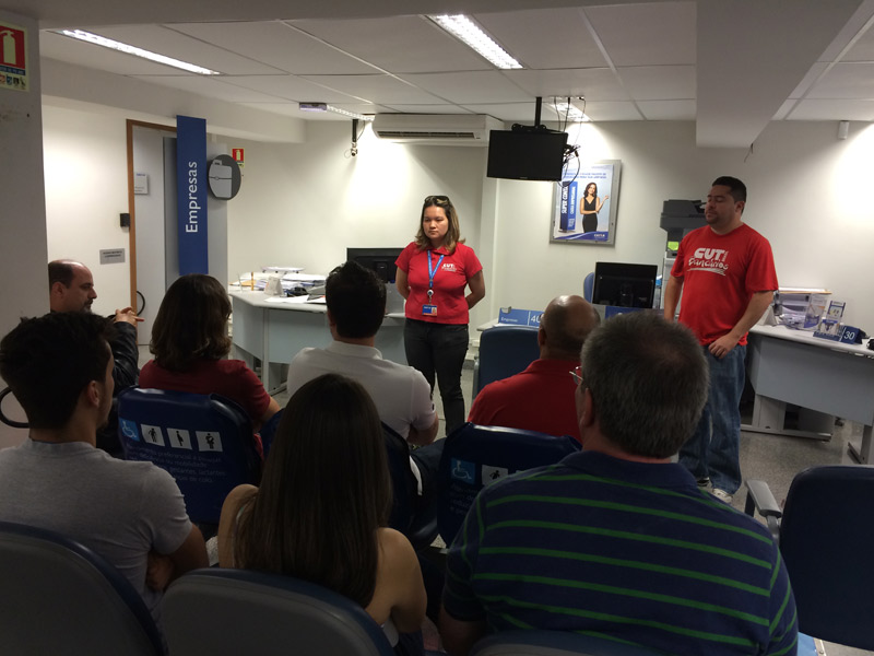 "Continuamos as reuniões nas agências do Distrito Federal para conversar com nossos colegas sobre os principais itens da pauta de reivindicações definidas no 30º Congresso Nacional dos Empregados da Caixa Econômica Federal (Conecef). Reforçamos também a participação do Sindicato no dia a dia do bancário. Uma Caixa melhor é possível sempre com a nossa mobilização", afirmou Fabiana Uehara, diretora do Sindicato e da Confederação Nacional dos Trabalhadores do Ramo Financeiro (Contraf-CUT).