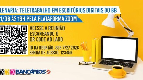O Sindicato convida os funcionários e funcionárias do Banco do Brasil que trabalham em agências/escritórios digitais para uma plenária virtual para debater o tema teletrabalho.