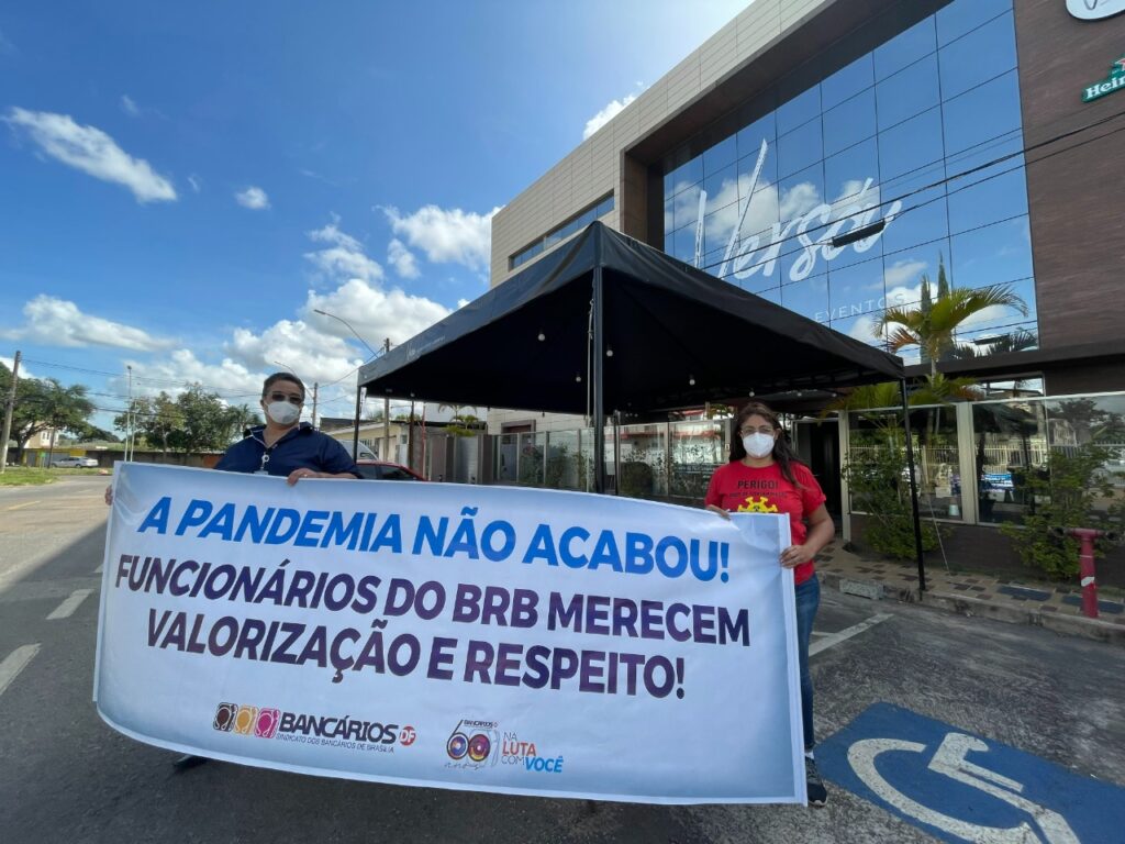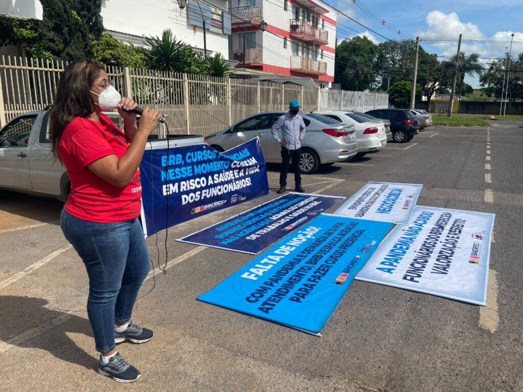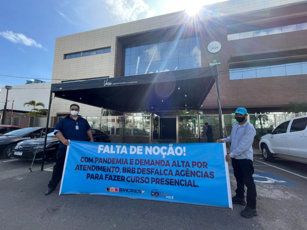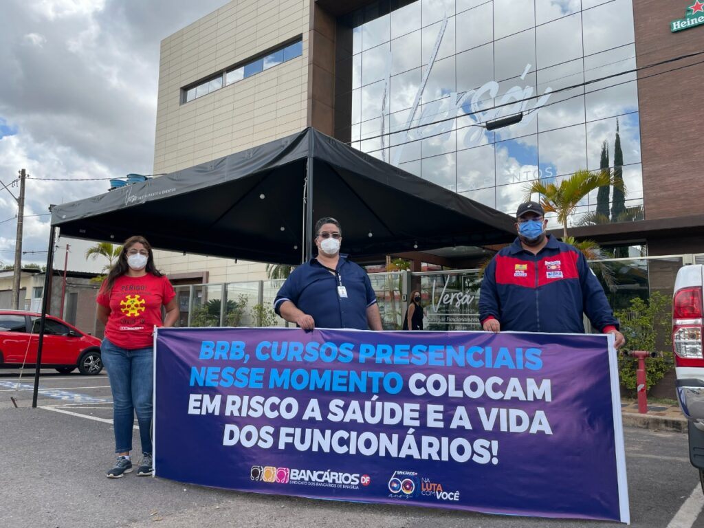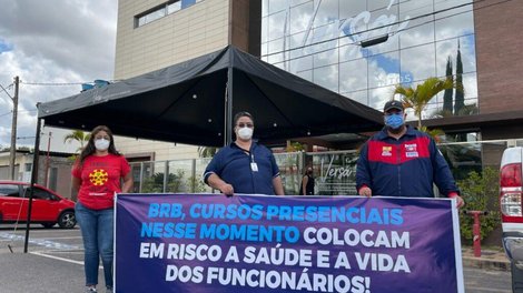 Todo o mundo já entendeu que o momento pede cuidado redobrado para evitar mais contaminações por covid-19 e influenza. O BRB, no entanto, segue na contramão. Nesta terça-feira (25), agências bancárias foram desfalcadas para a realização de um curso presencial no Núcleo Bandeirante. Contra a decisão do banco, que coloca em risco a vida e a saúde dos trabalhadores, o Sindicato promoveu um protesto.