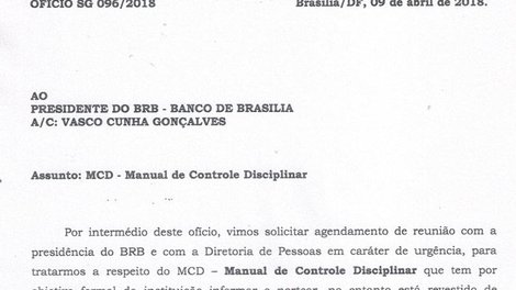 Atendendo solicitação do Sindicato, o BRB agendou reunião, para o próximo dia 18, entre a entidade, a presidência e a Diretoria de Pessoas do banco, para discutir o Manual de Controle Disciplinar (MCD), cuja publicação tem sido vista com desconforto e apreensão pelos funcionários e gestores das unidades ou departamentos.