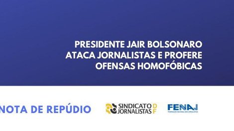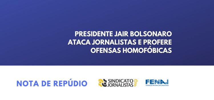 O Sindicato dos Jornalistas Profissionais do Distrito Federal (SJPDF) e a Federação Nacional dos Jornalistas (Fenaj) repudiam mais um violento ataque do presidente Jair Bolsonaro a jornalistas. Desta vez, foi na portaria do Palácio da Alvorada, residência oficial do chefe do Poder Executivo.
