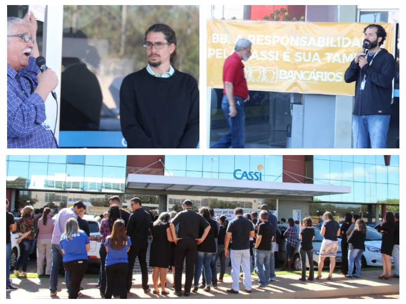 A mobilização contou participação dos funcionários da Cassi, que foram trabalhar de luto e protestaram pela manutenção de seus direitos e pelo fim do congelamento salarial. “Viemos cobrar compromisso dos representantes eleitos com os interesses dos associados, que os elegeram para que defendam a Cassi dos ataques do banco. Também nos solidarizamos com a luta dos funcionários da Cassi”, explica Kleytton Morais, diretor do Sindicato.
