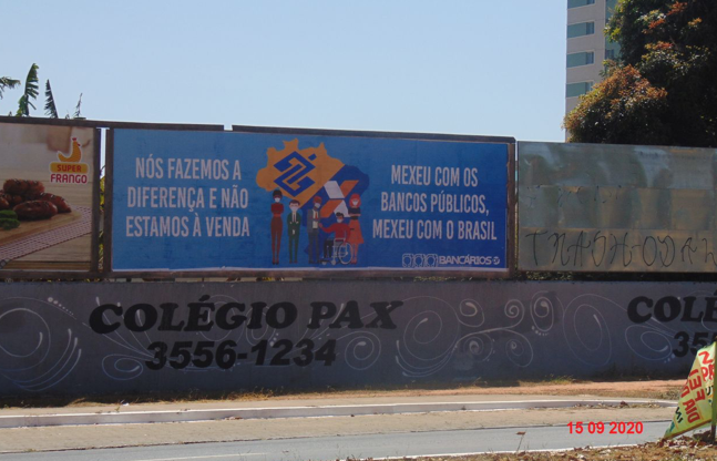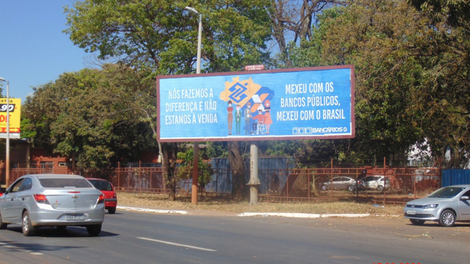 A ameaça à manutenção dos bancos públicos, principalmente Banco do Brasil e Caixa, é diária. A luta em defesa dessas instituições também. Fortalecendo esse movimento nacional que visa proteger o patrimônio nacional, o Sindicato estampou a campanha “Nós fazemos a diferença e não estamos à venda. Mexeu com os bancos públicos mexeu com o Brasil” em outdoors e busdoors em várias regiões do Distrito Federal.