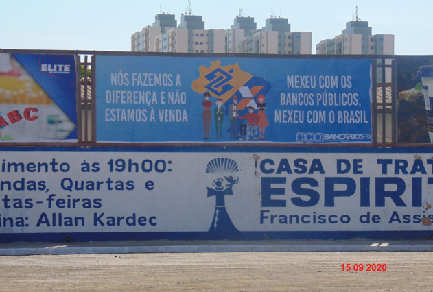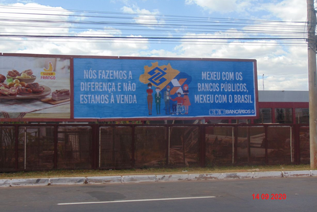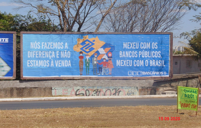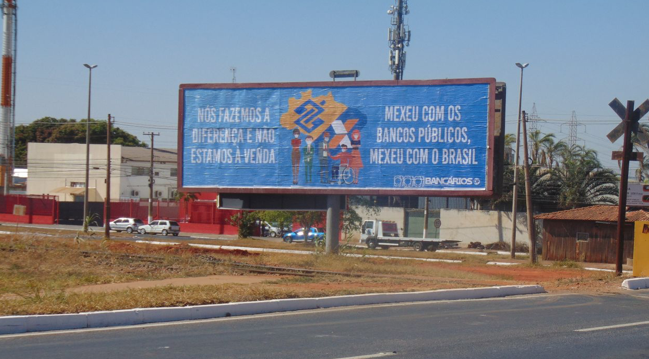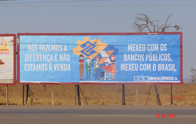 O manifesto, por meio de painéis de norte a sul da capital federal, reforça a importância dos bancos públicos e é uma das formas que a entidade encontrou de chamar a população para a luta.