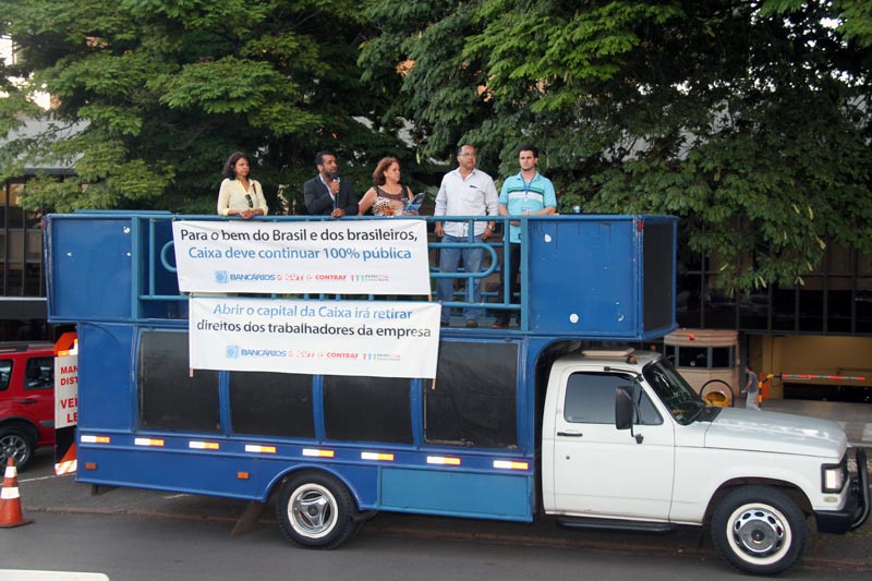 Do alto de um carro de som estacionado em frente ao Matriz I, os dirigentes sindicais reforçaram que não admitem, em hipótese alguma, a abertura de capital da Caixa. E cobraram da nova presidenta uma posição contrária a essa dinâmica neoliberal.