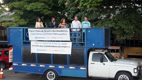 Do alto de um carro de som estacionado em frente ao Matriz I, os dirigentes sindicais reforçaram que não admitem, em hipótese alguma, a abertura de capital da Caixa. E cobraram da nova presidenta uma posição contrária a essa dinâmica neoliberal.