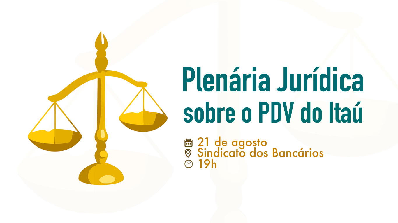 O Sindicato convida os bancários do Itaú para participarem de plenária jurídica que será realizada no dia 21, na sede da entidade, para tratar do plano de demissão voluntária (PDV) lançado pela instituição financeira. O encontro será às 19h. O Sindicato fica na EQS 314/315 – Asa Sul.
