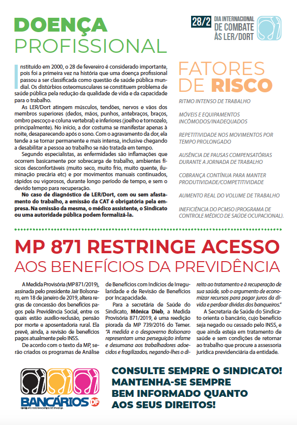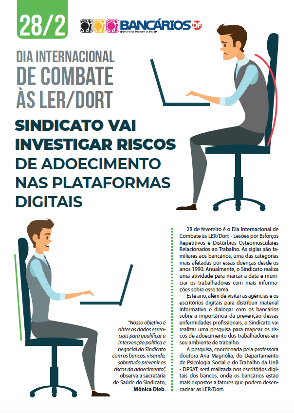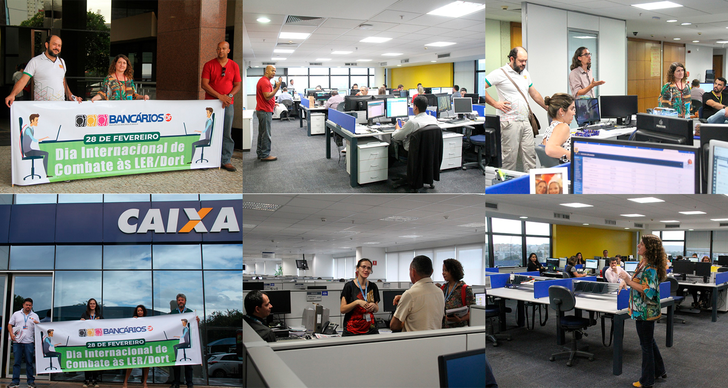 Para marcar o Dia Mundial de Combate às LER/Dort (Lesões por Esforço Repetitivo e Distúrbios Osteomusculares Relacionados ao Trabalho), o Sindicato anunciou no último dia 28, durante ato em agências e escritórios digitais, que fará uma pesquisa para investigar os indicadores relacionados à organização do trabalho, ao modelo de gestão, ao sofrimento e danos físicos, psicológicos e sociais que se encontram na base do adoecimento dos bancários que trabalham nas plataformas digitais.