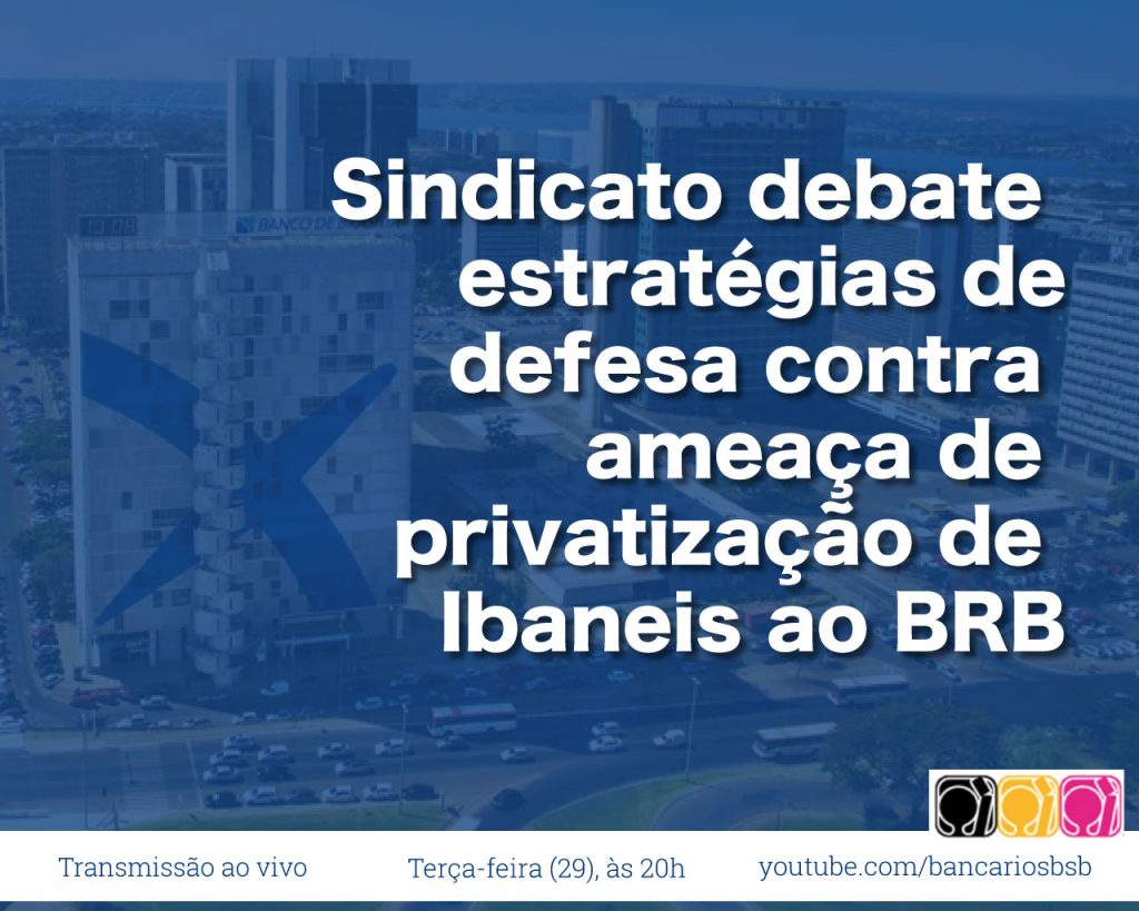 O presidente do Sindicato, Kleytton Morais, diretoria e assessoria fazem uma live nesta terça-feira (29), às 20h, para debater estratégias de defesa contra a ameaça de privatização de Ibaneis ao BRB.