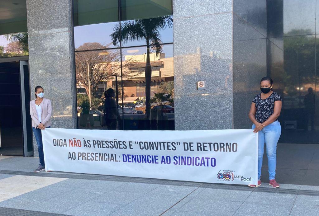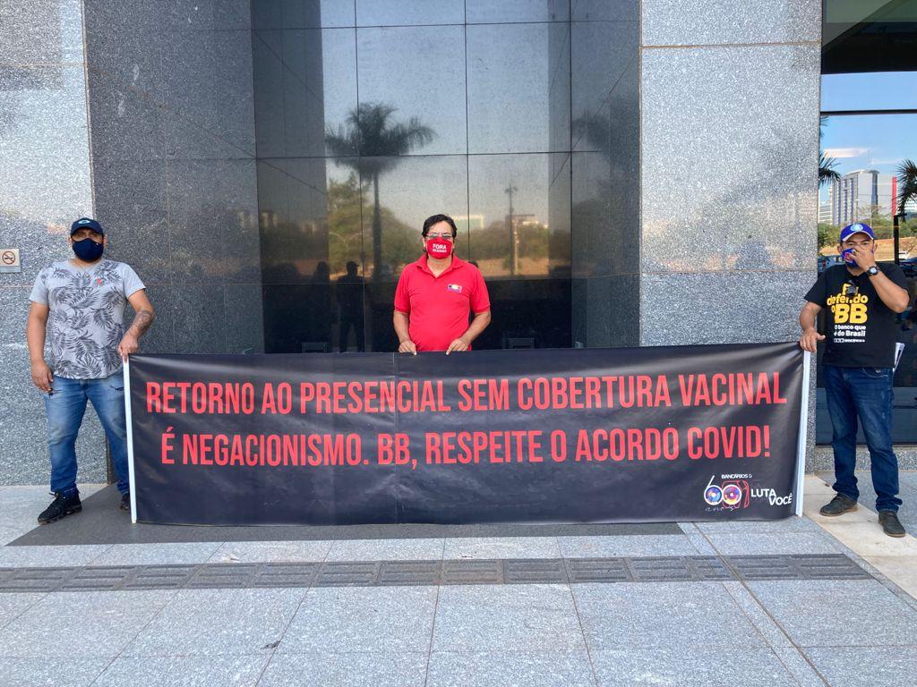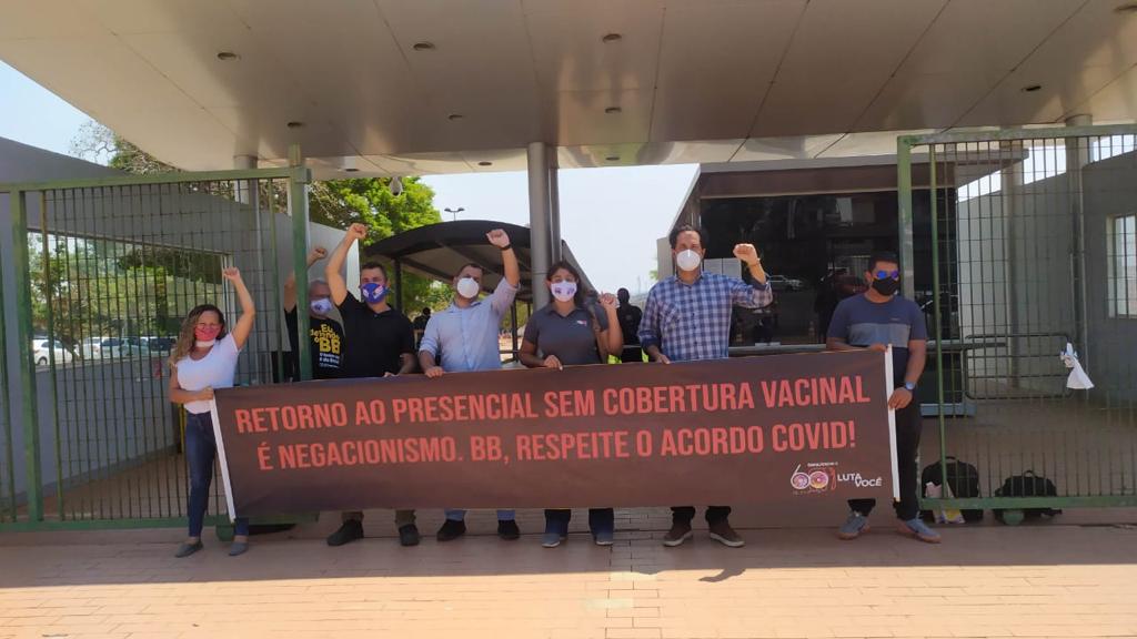 A semana começou com luta em Brasília. Nesta segunda-feira (20), antes das 7h, diretores do Sindicato e da Federação dos Bancários do Centro Norte (Fetec-CUT/CN) já se encontravam nos prédios administrativos em protesto contra a decisão do banco de convite dos funcionários que estão em home Office a retornarem ao trabalho presencial. Os atos cobram respeito por parte do banco à vida de bancários e bancárias, à mesa de negociação e ao Acordo Coletivo de Trabalho (ACT) Emergencial da Covid-19.