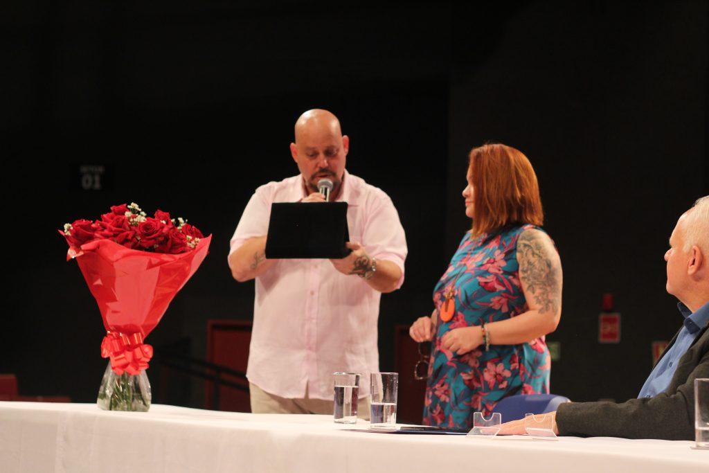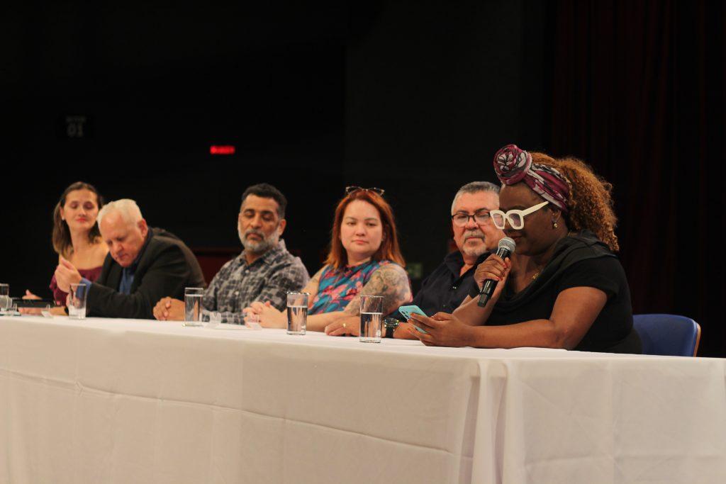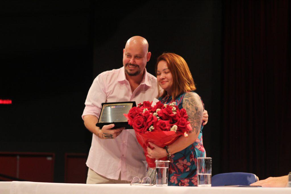 A primeira a falar foi Rafaela Gomes, dirigente da FETEC. Ela afirmou a importância do momento que a categoria vivenciava, com a posse de Fabiana. “Fabi tem uma grande trajetória na defesa dos interesses da categoria, é a pessoa certa para trabalhar certo dentro do Conselho”, disse.