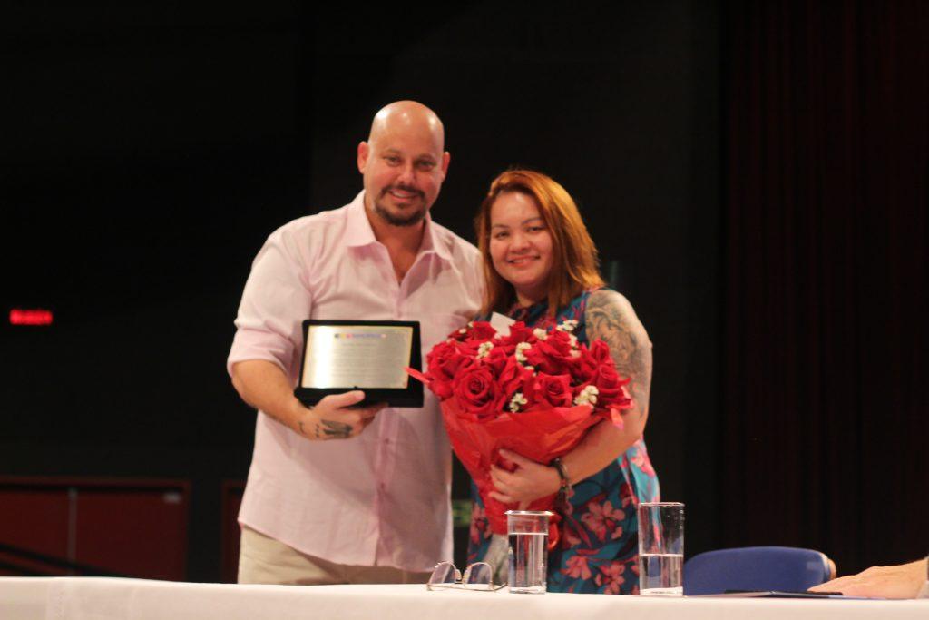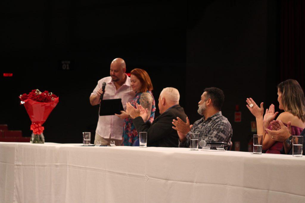 Antes de encerrar o ato, dentro do teatro, o dirigente Rodrigo Brito, fez a leitura do texto em uma placa entregue saudando a trajetória de Fabiana Uehara e ofertou um buque de rosas. A atividade foi encerrada no hall do sindicato, com um show musical, com a categoria reafirmando a disposição de reforçar a unidade e a construção de um movimento sindical cada vez mais forte. A deputada federal Érika Kokay fez o pronunciamento final, saudou a conselheira Fabiana, a direção do sindicato e a categoria. Em seguida a banda Cangaceiros do Cerrado iniciou um show coroando a noite de conquista da categoria.