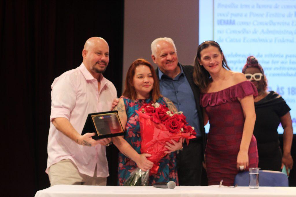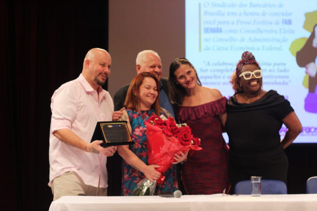 A noite de quarta-feira, 20, foi de encontros e comemoração na sede do Sindicato dos Bancários de Brasília para marcar a posse da conselheira do Conselho de Administração da Caixa Econômica Federal, Fabiana Uehara Proscholdt, eleita em março passado, representando os empregados e empregadas do banco.