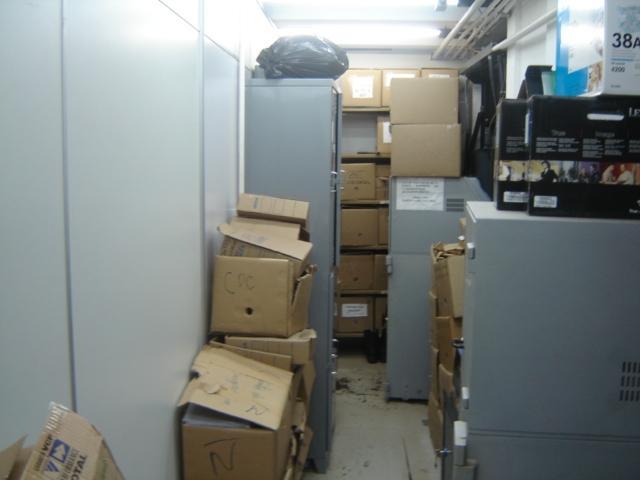 Além de expostos à fiação elétrica, num iminente risco de curto circuito e incêndio, os funcionários são obrigados ainda a conviver com armários, objetos e caixas de papelão (repletos de poeira) espalhados ou amontoados pelos corredores ou em ambientes como o auto-atendimento, a retaguarda, a gerência e a copa, dificultando a livre circulação deles. A copa, aliás, possui uma área de míseros 4,5 metros quadrados destinada ao lanche e às refeições.