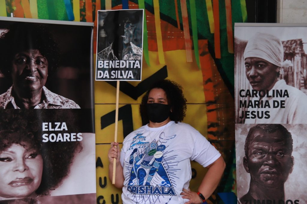 Enquanto exaltavam a vida e a herança de Zumbi dos Palmares para o povo negro brasileiro, dezenas de pessoas gritaram “Fora, Sérgio Camargo” com cartazes estampados com rostos de ícones negros. A fundação excluiu grandes personalidades negras, como Elza Soares, Benedita da Silva, Zezé Motta e Gilberto Gil, do seu rol de referências negras do Brasil.