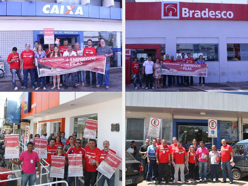 Diante das duras negociações com os banqueiros, que pouco têm avançado, os bancários e bancárias do Distrito Federal estão intensificando a mobilização para fortalecer a Campanha Nacional 2014. Nesta quinta-feira (4), os diretores do Sindicato percorreram as agências bancárias das regiões administrativas de Sobradinho e de Ceilândia.