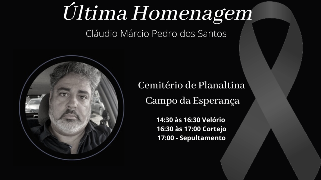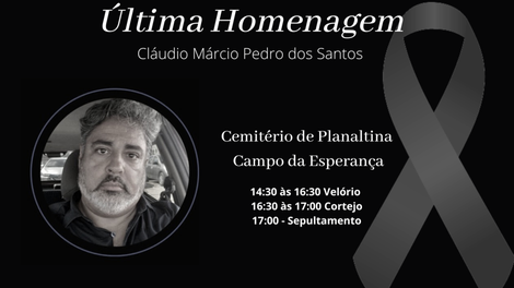 O velório de Cláudio Márcio acontece de 14h30 às 16h30 desta sexta-feira (3), no Cemitério de Planaltina Campo da Esperança (Templo Ecumênico). Sepultamento às 17h.