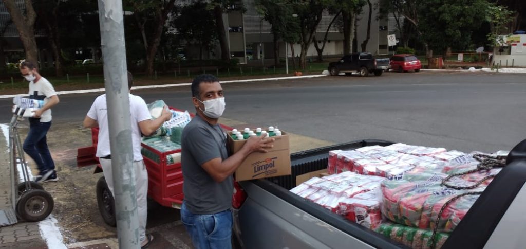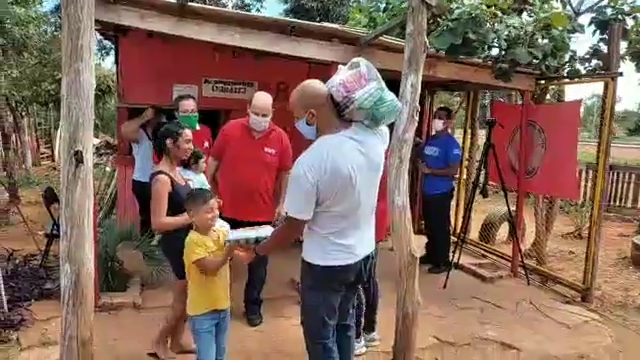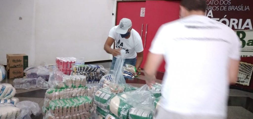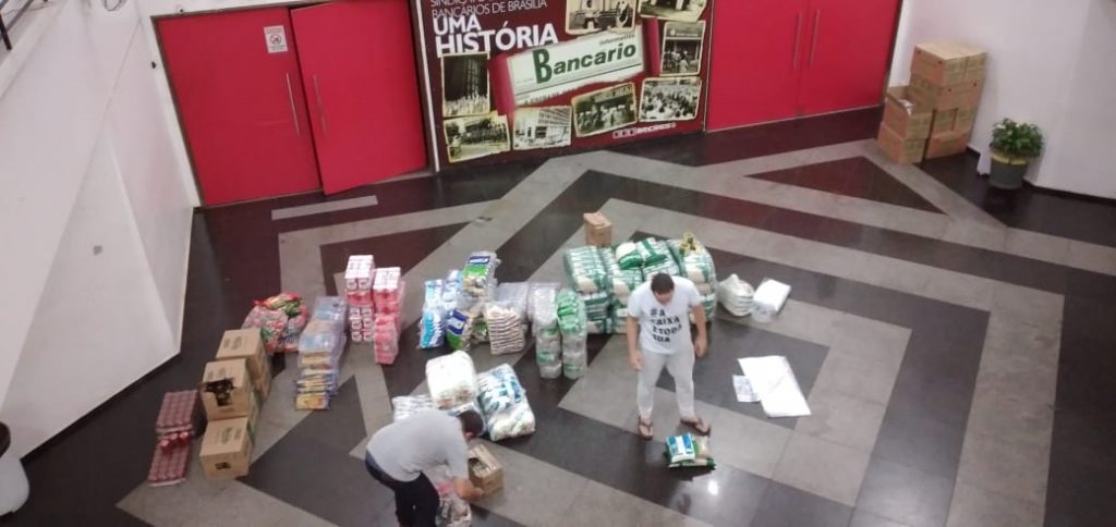 As cestas de alimentos e materiais de higiene, confeccionadas com doações dos bancários, foram entregues às cooperativas de catadores da Centcoop, à cooperativa de egressos Coopernabrás e ao Acampamento 10 de Junho, localizado em Ponte Alta, no Gama.