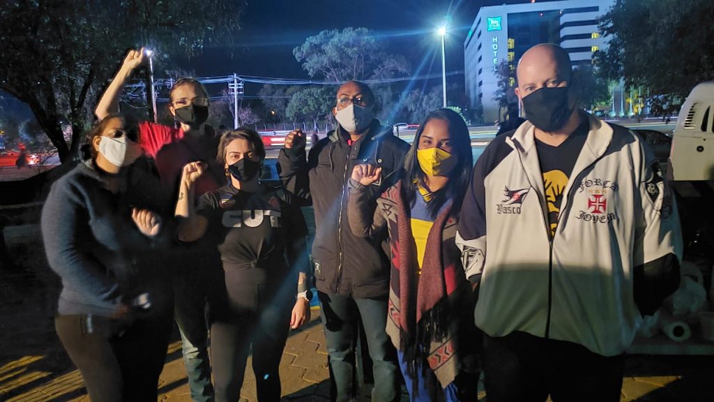 O diretor da Fetec-CUT/CN Rodrigo Britto também esteve presente na atividade no Aeroporto Internacional de Brasília.