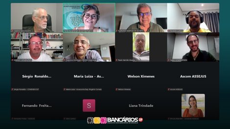 Durante a reunião, o diretor do Sindicato Ronaldo Lustosa apresentou às lideranças nacionais do serviço público um panorama da situação e solicitou apoio institucional para a defesa do banco público, dos empregos e da estabilidade da instituição.