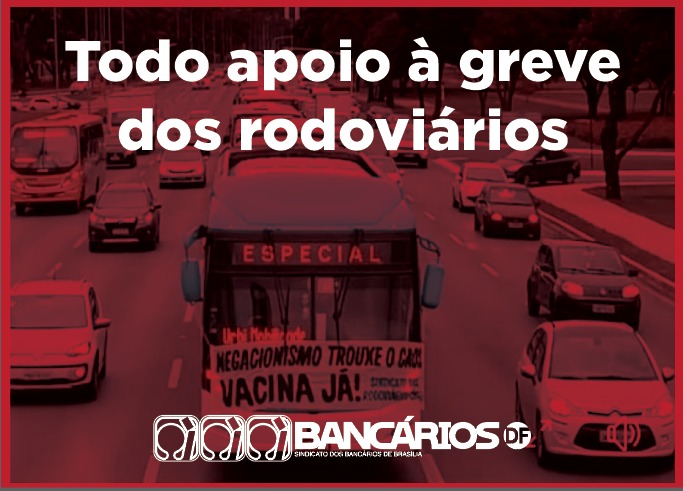 A greve de 24 horas realizada nesta segunda-feira (3) pelos rodoviários do Distrito Federal, por inclusão da categoria entre os grupos prioritários do plano de imunização contra a Covid-19, conta com total apoio e solidariedade do Sindicato dos Bancários de Brasília. A paralisação assegura em circulação a quantidade mínima de ônibus determinada pela Justiça.