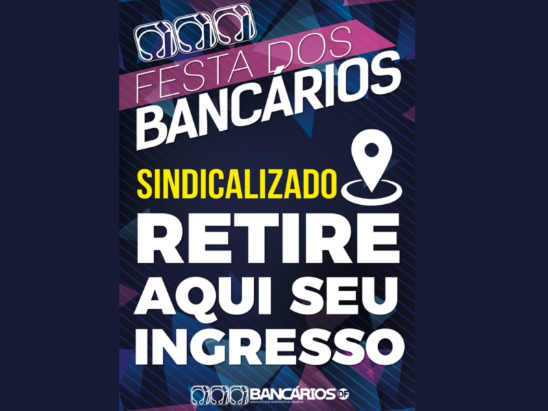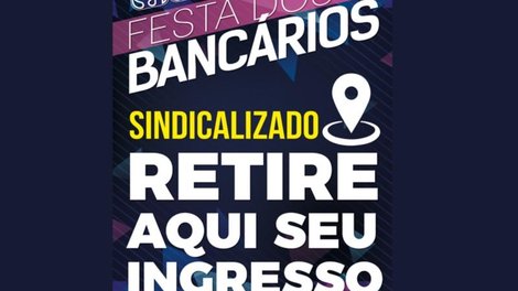 Os bancários sindicalizados lotados em prédios podem retirar o seu convite para a Festa dos Bancários 2017 nos pontos de distribuição montados pelo Sindicato nas regiões de grande concentração. O prazo vai até esta quarta-feira (23), e o horário de atendimento é das 9h às 18h. A Festa é neste sábado (26), na AABB.