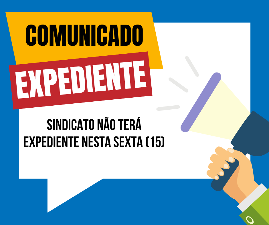 Em virtude da festa de confraternização de fim de ano dos funcionários e diretores, o Sindicato não terá expediente nesta sexta-feira (15).