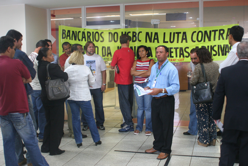 A manifestação, que contou com a distribuição de carta à população e aos bancários, ocorre em conjunto em outros países da América Latina. Das reivindicações dos bancários do HSBC constam ainda a redução da jornada sem prejuízo aos salários e o fim das metas abusivas. "Continuamos firmes na luta pela ratificação da Convenção 158 da OIT e pela conquista de mais empregos no país. Queremos proteção ao trabalhador, exatamente contra o que o banco está pondo em prática, declarou o diretor do Sindicato e funcionário do HSBC Paulo Frazão.