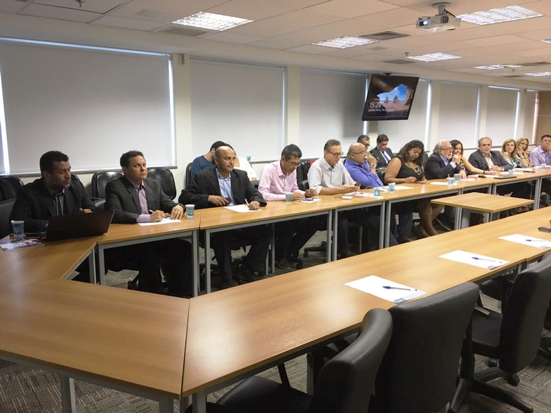 O presidente do Sindicato, Eduardo Araújo (primeiro da esq. para a dir.), na reunião desta quarta-feira
