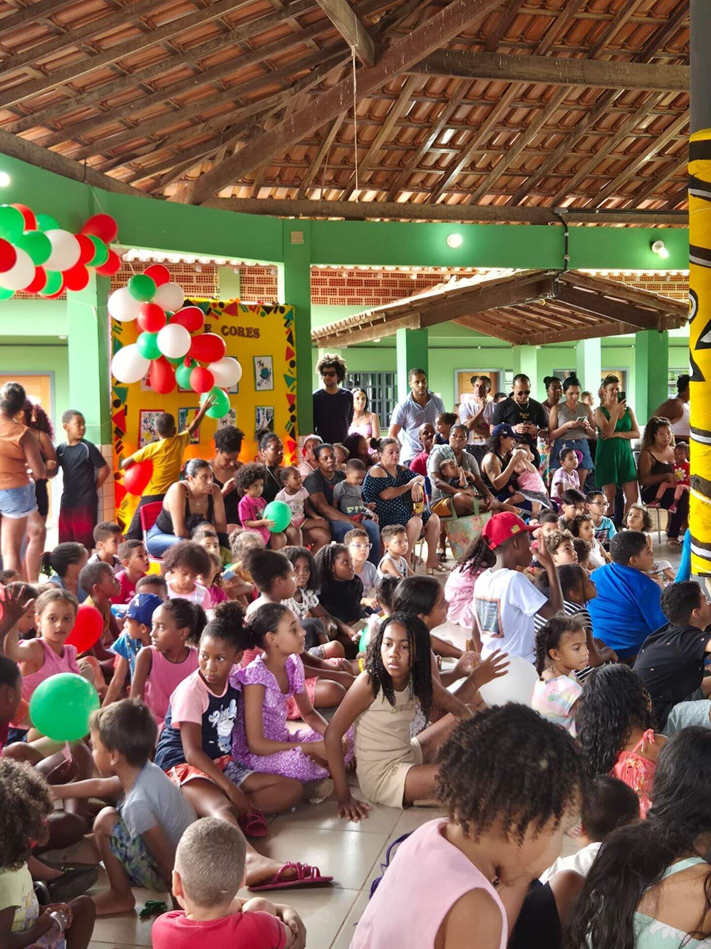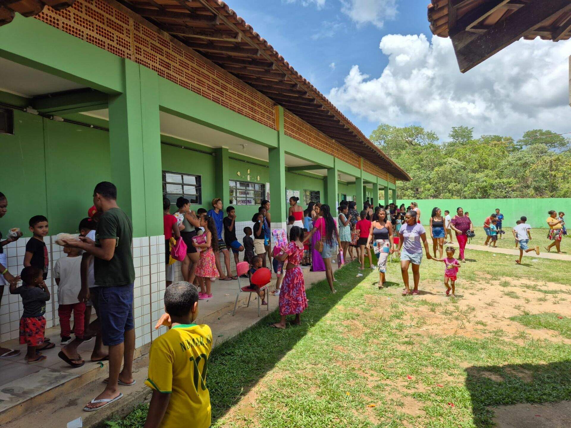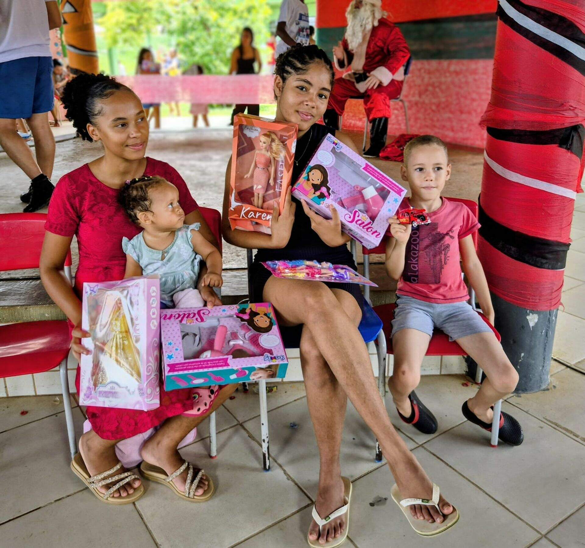 A atividade ocorreu no último dia 14, na Escola da Vila do Morro Encantado, e contou com uma programação especial voltada à criançada. Além da entrega de brinquedos, o evento teve a presença do Papai Noel, que distribuiu abraços, balas e muita alegria. As famílias também puderam participar de um lanche coletivo, com a distribuição de cachorro-quente e refrigerante, preparados com dedicação pelos organizadores, com o envolvimento de moradores da própria comunidade.