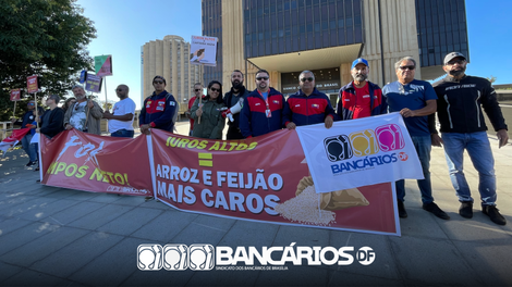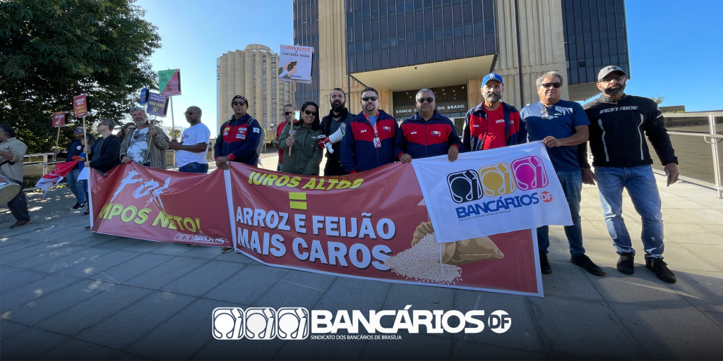O Sindicato participou, juntamente com a Contraf-CUT, CUT-DF, demais sindicatos e diversos movimentos sociais, de manifestação em frente à sede do Banco Central, nesta quarta-feira (18), para conscientizar a população sobre os impactos negativos da taxa básica de juros (Selic) praticada pela instituição e exigir do Comitê de Política Monetária (Copom) a sua queda.