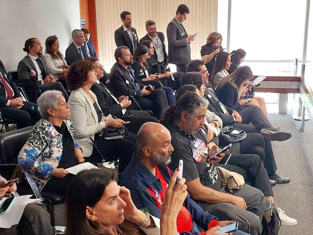 Os sindicalistas também protestaram contra o Projeto de Emenda à Constituição (PEC) 65, que estava sendo debatido em audiência pública na Comissão de Constituição e Justiça (CCJ) do Senado, no mesmo horário. De autoria do senador Vanderlan Cardoso (PSD-GO), o texto concede autonomia financeira e orçamentária à autoridade monetária.