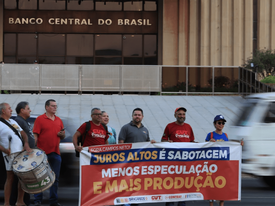 O protesto também pediu a saída do presidente do BC, Roberto Campos Neto. “Estamos aqui mais uma vez para pedir a redução dos juros e, ao mesmo tempo, dizer que queremos que Campos Neto caia fora, se demita por incompetência. Ele está prejudicando o país e o povo brasileiro com essas taxas de juros altíssimas. Fora, Campos Neto”, ressaltou Washington Henrique, diretor da Federação Centro-Norte (Fetec-CUT/CN).