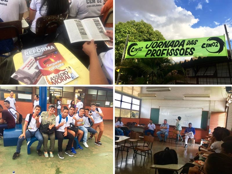 O Sindicato participou, na quarta-feira (31), do Fórum de Discussão de Profissões e Cidadania no Ensino Médio, que ocorreu no Centro de Ensino Médio 02 (CEM 02), de Ceilândia, para debater assuntos de interesse da comunidade escolar.