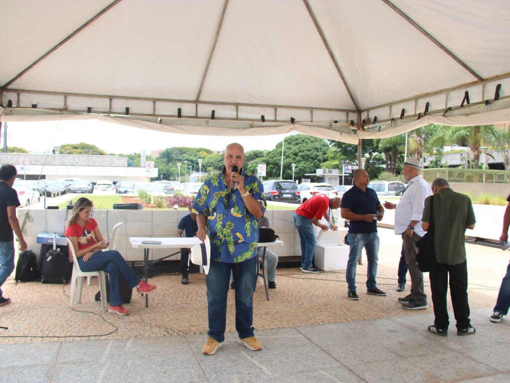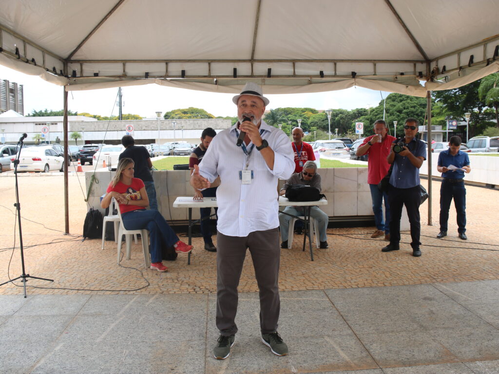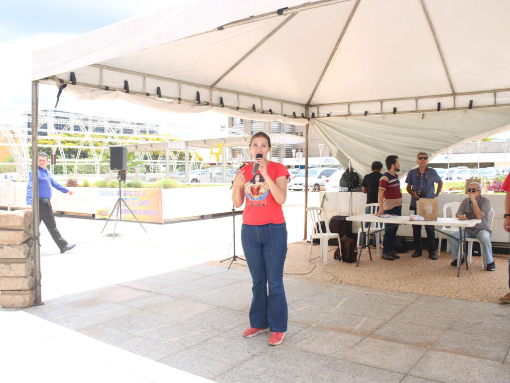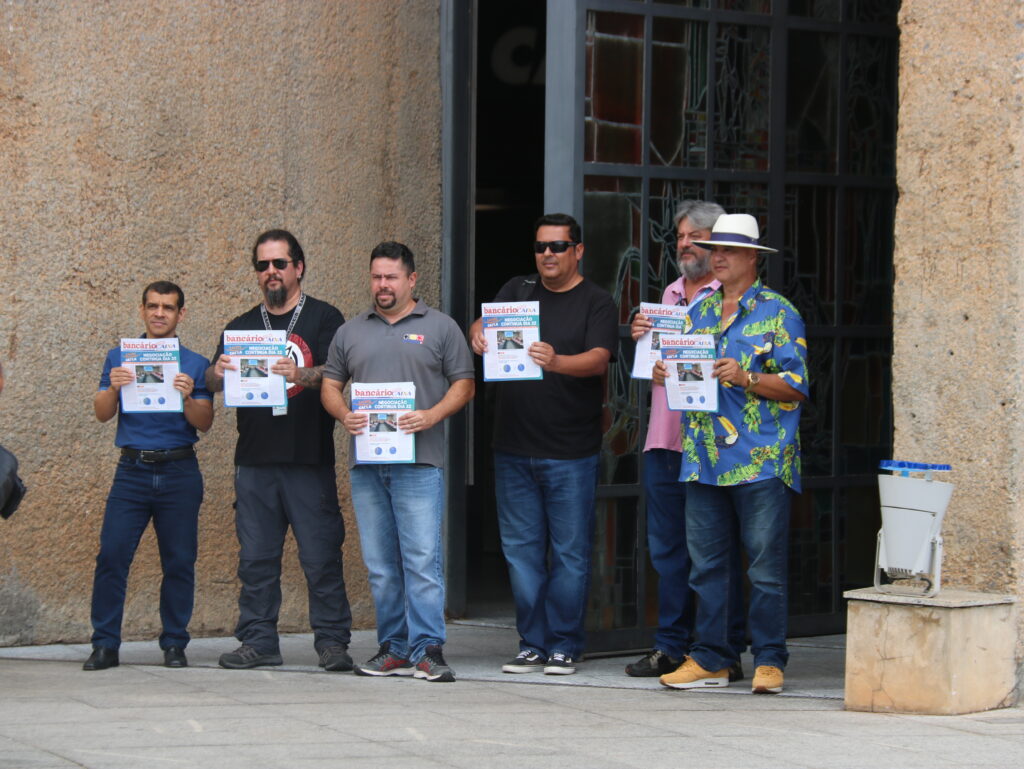 Em mais um dia de luta pelo reequilíbrio do Saúde Caixa, dirigentes do Sindicato se juntaram aos empregados do banco, na manhã desta quarta-feira (22), em frente ao prédio Matriz I. O ato em defesa do plano de saúde foi realizado simultaneamente por entidades sindicais de todo o país. Também houve um tuitaço, das 11h às 12h, com a hashtag #QueremosSaúdeCaixa.